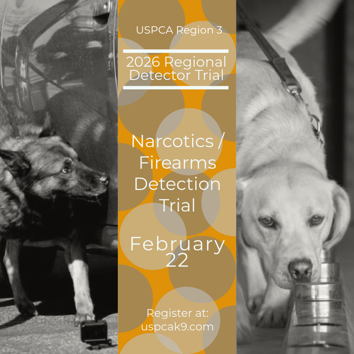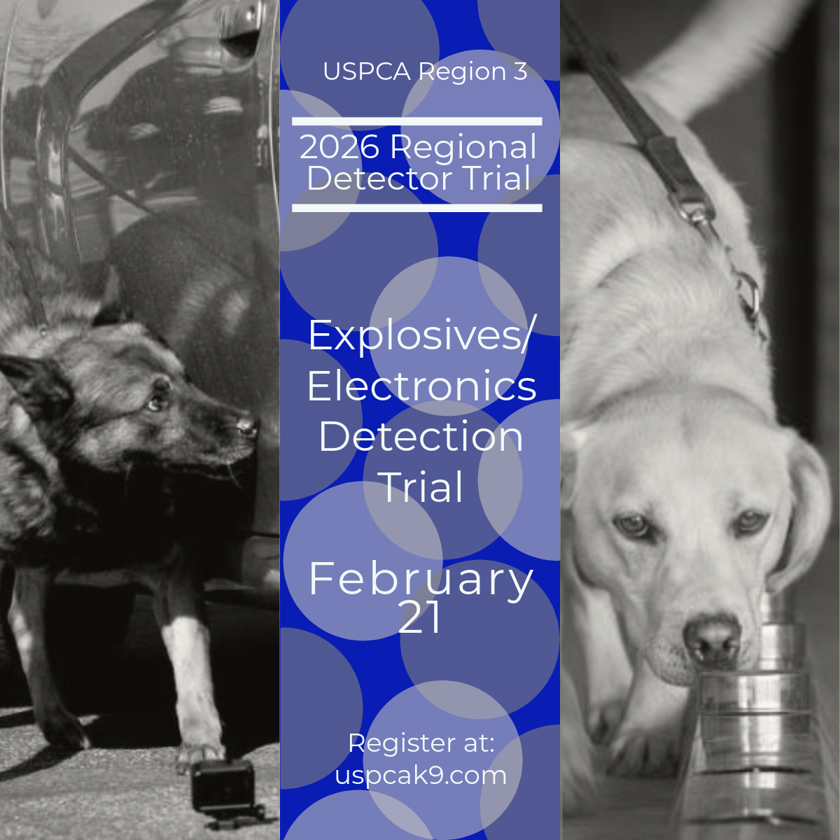 USPCA Region 3 Detection Certification Trials Feb 21st, 2026 - Explosives and Electronic Detection Certification Location: Training Center at 2869 Towerview Road in Herndon, VA Meet at 0730 hours here for handler meetings Certification Fee is $75.00 To Register for the trial on Feb 21st, CLICK HERE